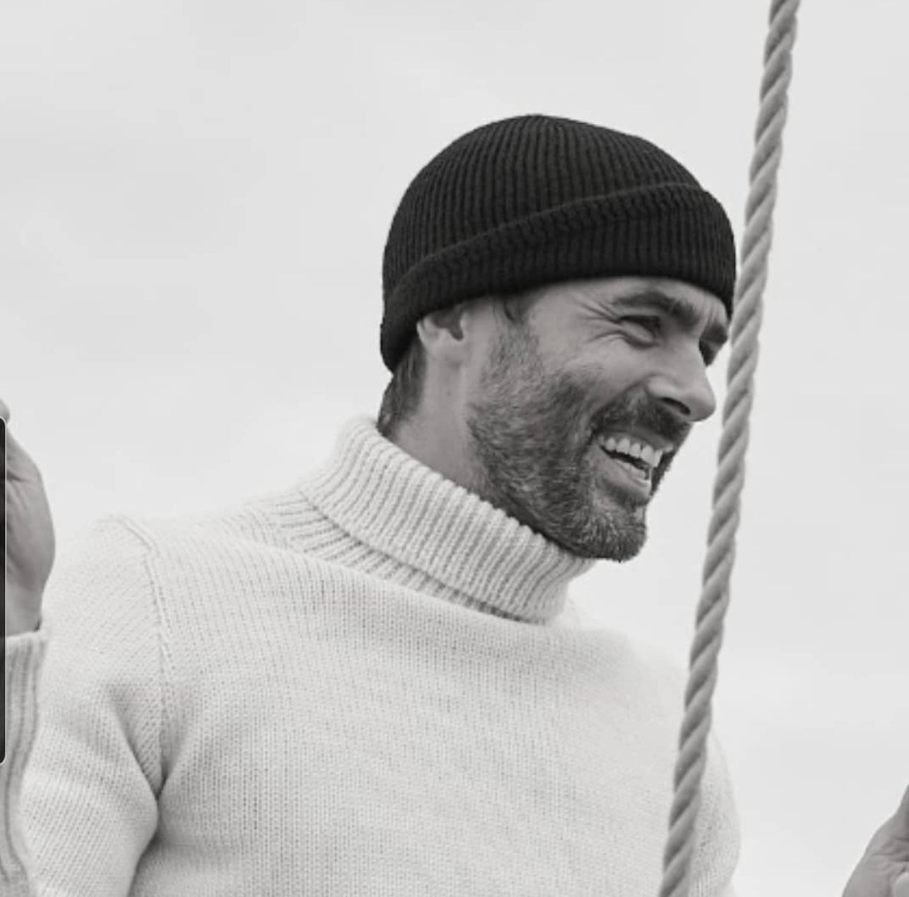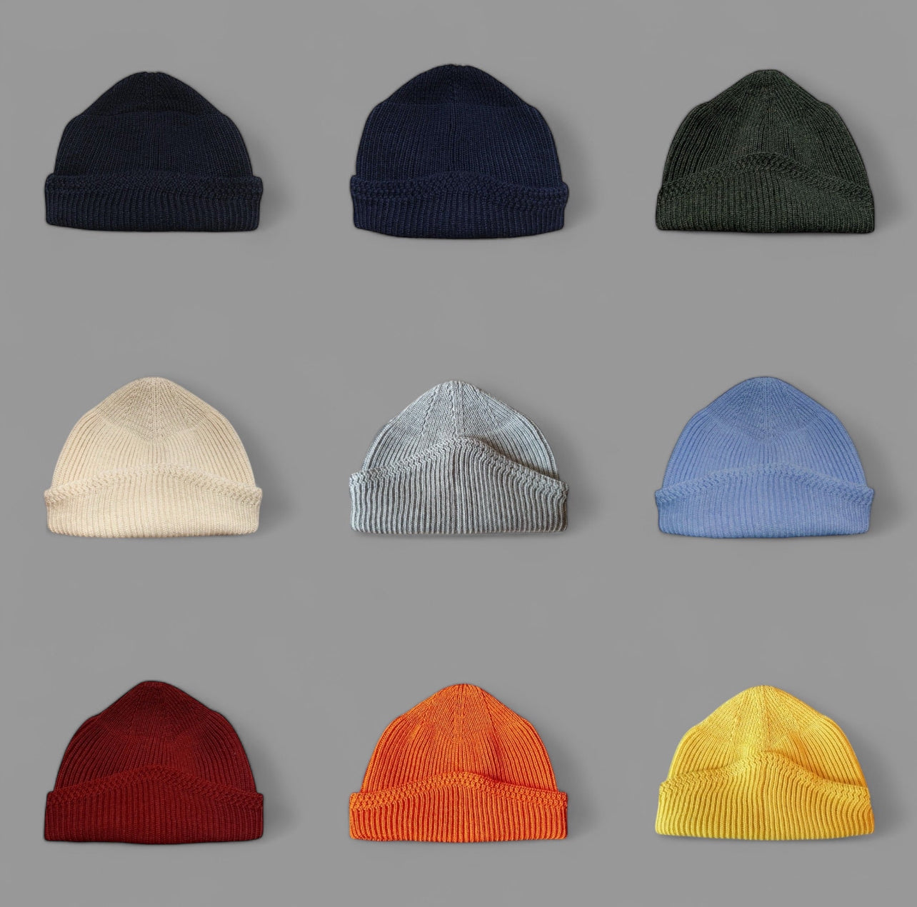 Ribbed knit hat can be worn unfolded for extreme cold weather. Made from 100% British wool.