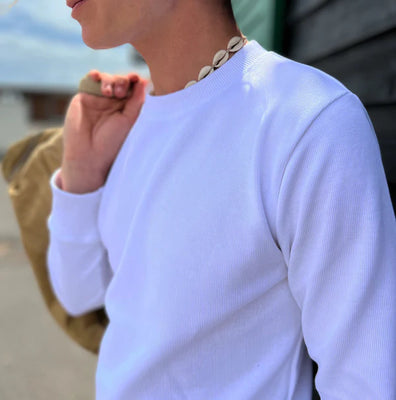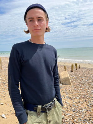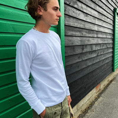 An updated version of our Long sleeve Crew Neck Shirt minus chest pocket and a longer cuff but in the same heavy weight cotton that functions as a Winter t-shirt or Summer sweatshirt. Made from heavy weight 280gsm 100% Rib Milano Cotton.